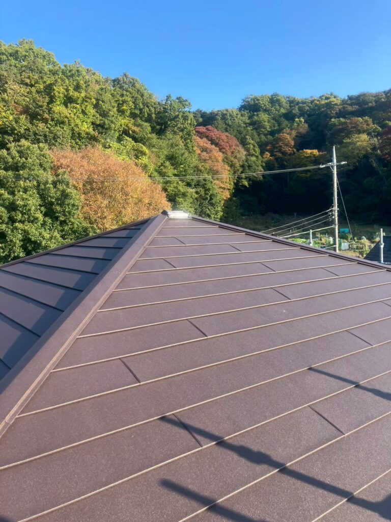 既存屋根の上から屋根カバー工法を採用し、軽量で耐久性に優れたガルテクトを採用しました。屋根カバー工事とは、今ある屋根の上に新しい屋根材を重ねて施工する工法です。従来の葺き替えのように既存の屋根をすべて撤去する必要がなく、廃材を減らしてコストも抑えられるのが特長です。