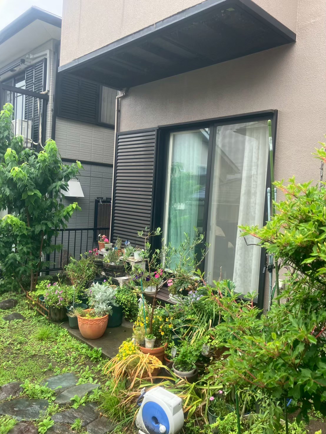 外壁は防水性を高める塗装とシーリング工事を実施しました。さらに、バルコニー下にはアウターシェード(日よけ)とウッドデッキを設置することで、雨対策だけでなく、暑さ対策と使い勝手の向上も図っています。