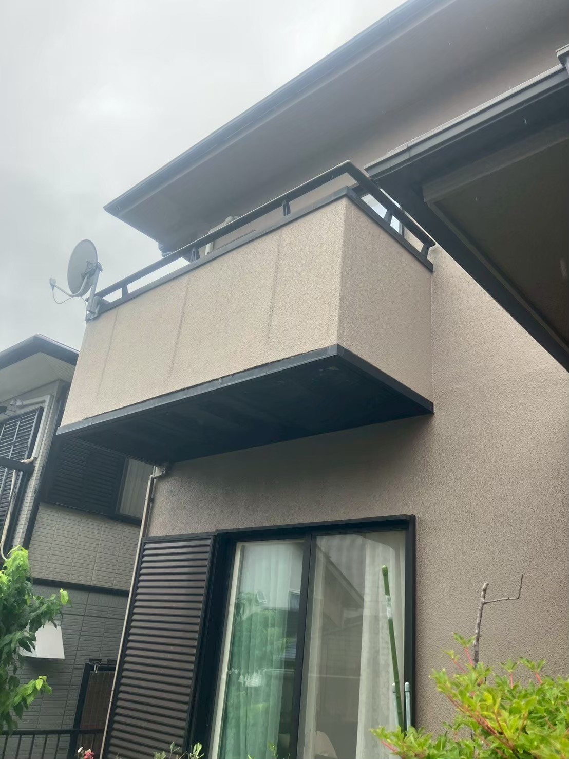 バルコニーからの雨漏りが気になり始めたことをきっかけに、「この先も安心して長く住み続けられる住まいにしたい」とご相談をいただきました。バルコニーは経年劣化が進んでいたため、雨漏りの原因をしっかり解消できるよう新しいバルコニーへの交換をご希望でした。あわせて、屋根や外壁など外まわり全体の状態も見直し、将来的なメンテナンス負担を減らすため、外装をまとめて整えたいとのご要望でした。