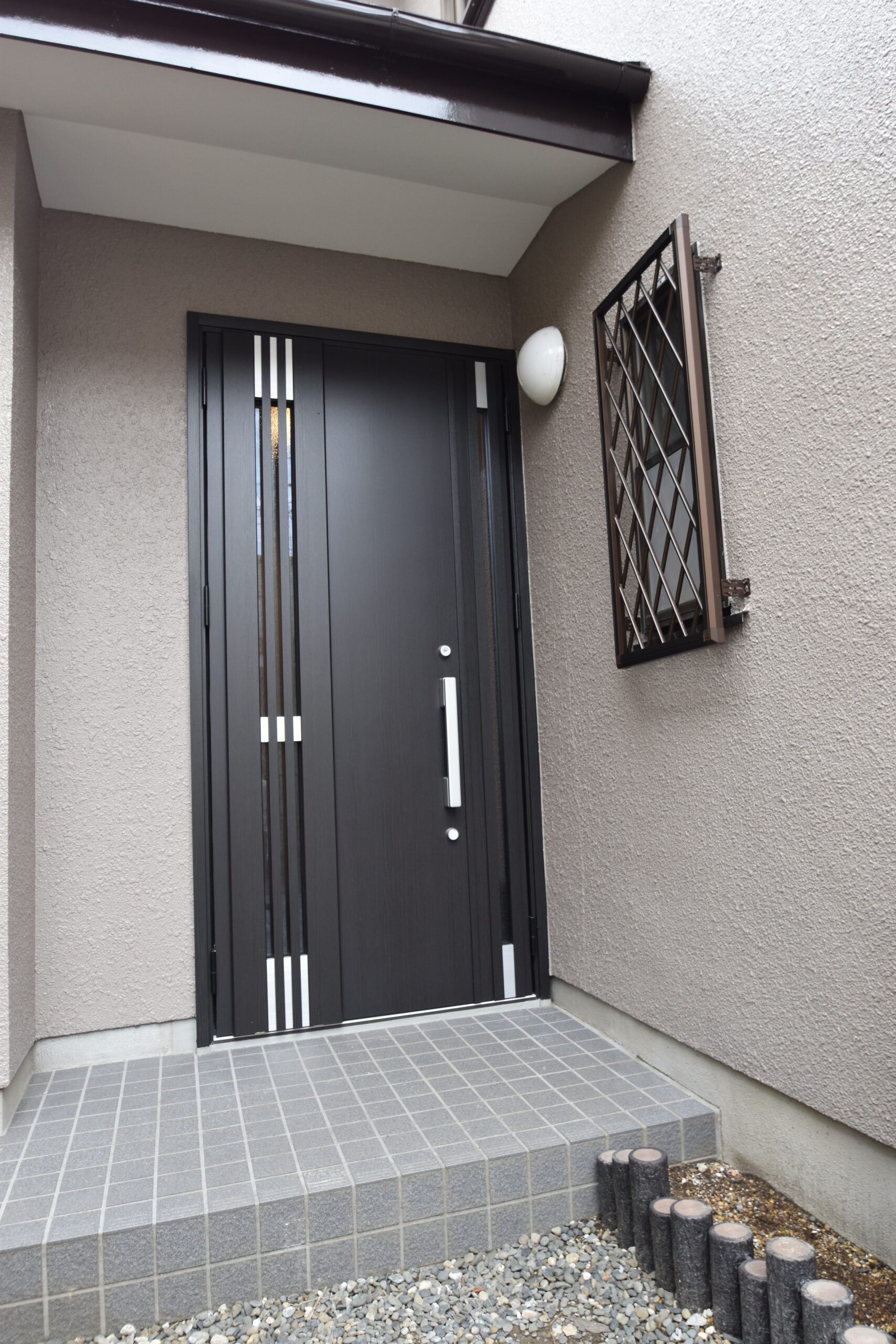 夏はドアを閉めたまま風を取り込める採風タイプの玄関ドアをお選びいただきました。(LIXIL ジエスタ2 採風タイプ 親子入隅 G82型)